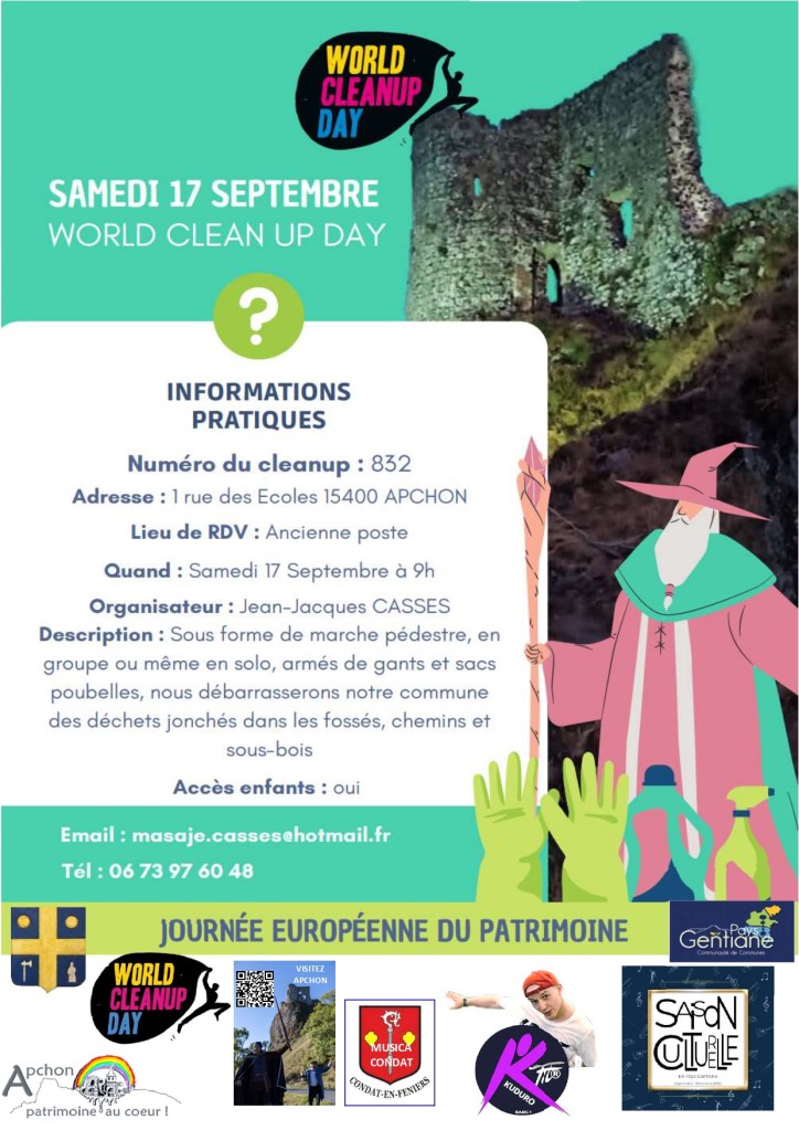 World Clean Up Day – Spectacle de La Troupe Des Nuits Aux Flambeaux – Concert – Musica Condat – Kuduro’fit – Association Haut et Clair – Visitez Apchon – Saison culturelle – Spectacle – Joe & Joe – Exposition