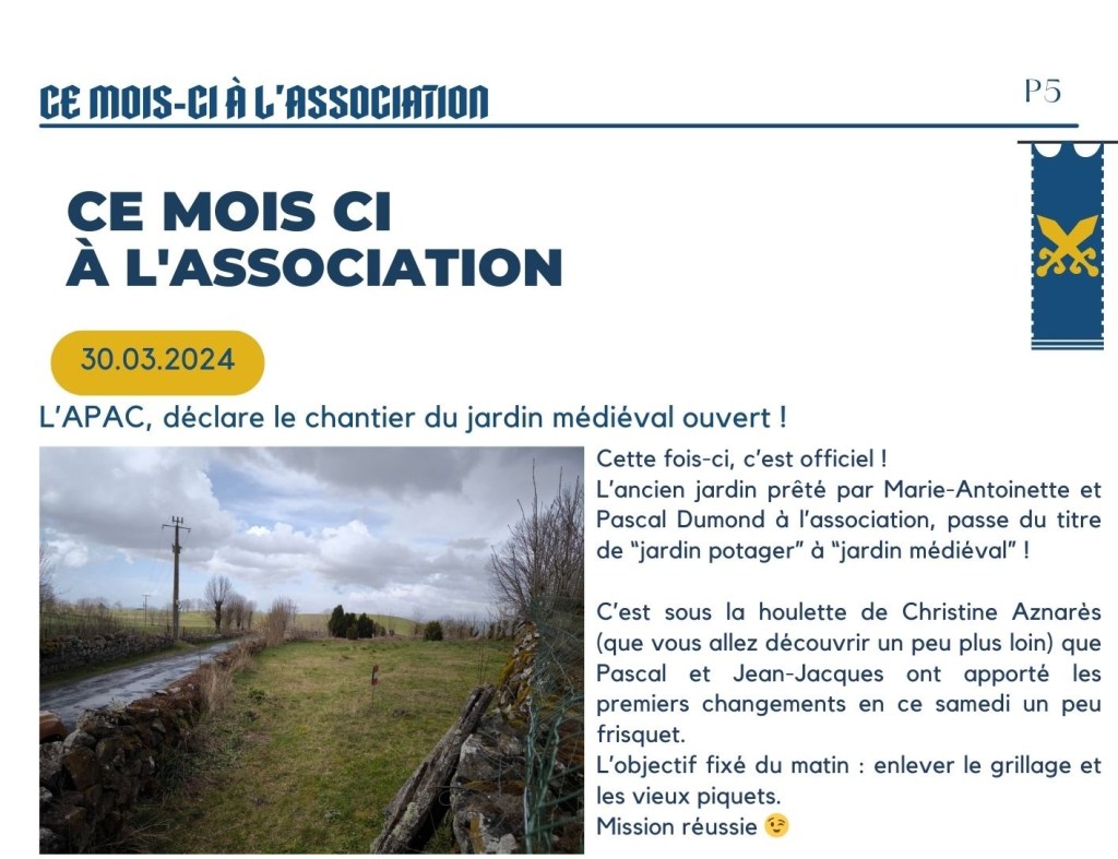 L’APAC, Déclare le chantier du jardin médiéval ouvert !