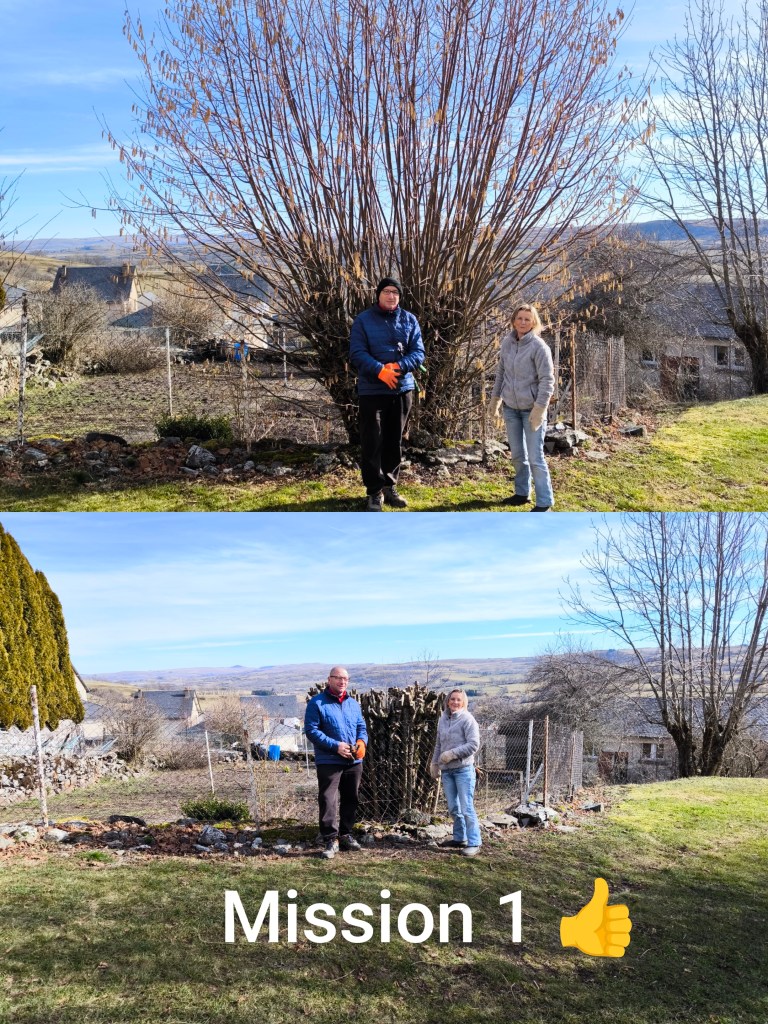 Remonter un mur, récupérer planches et croûtes à la scierie de Romain Terrolles, couper des branches de noisetiers etc…